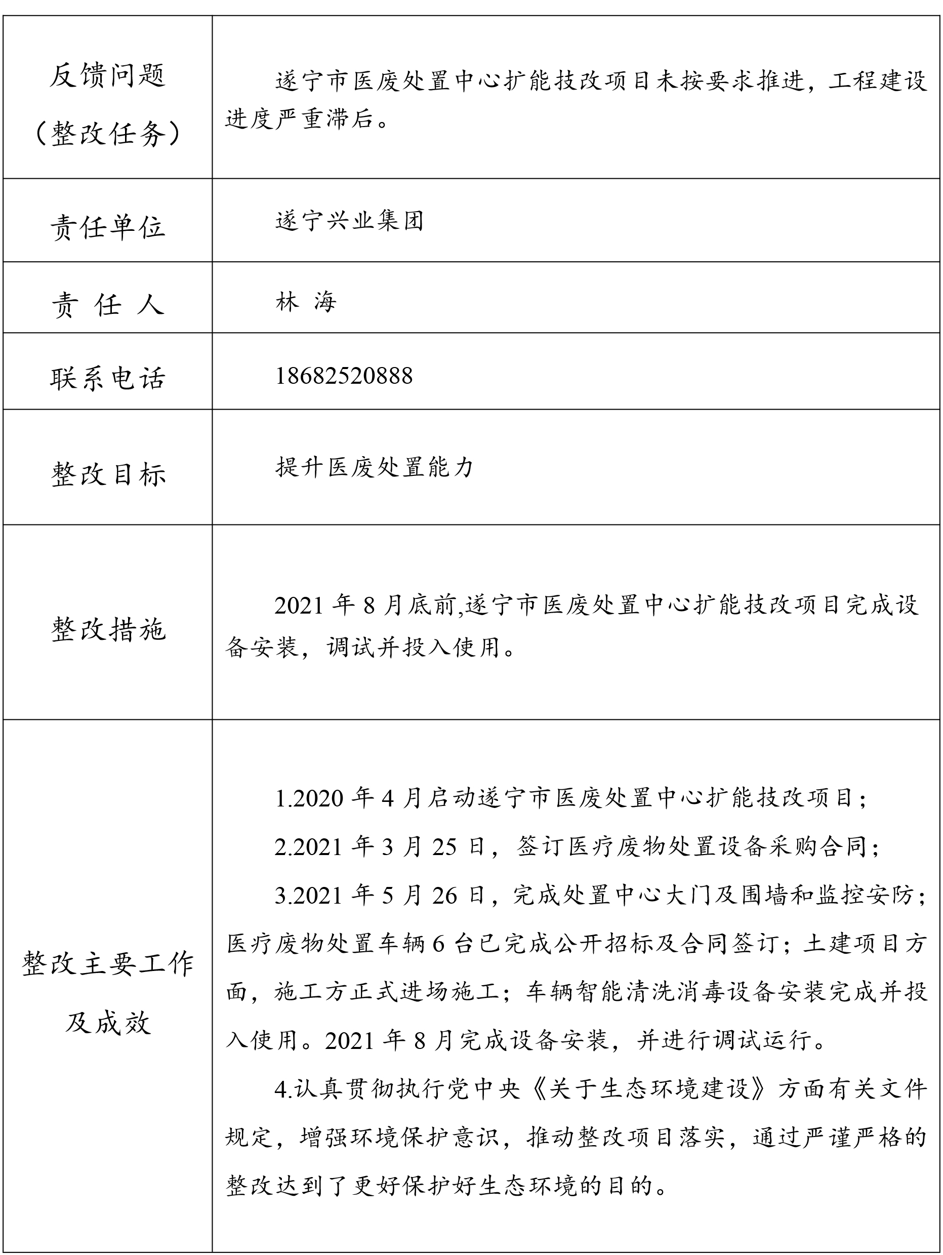 生態(tài)環(huán)境保護督察反饋意見整改任務(wù)完成情況公示表